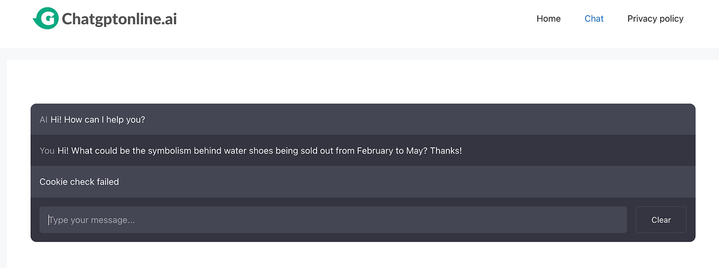 There’s no emfootment, though; no freedom, no shoe-hope, no ‘this’. Evidently, we don’t see eye to AI (yet).